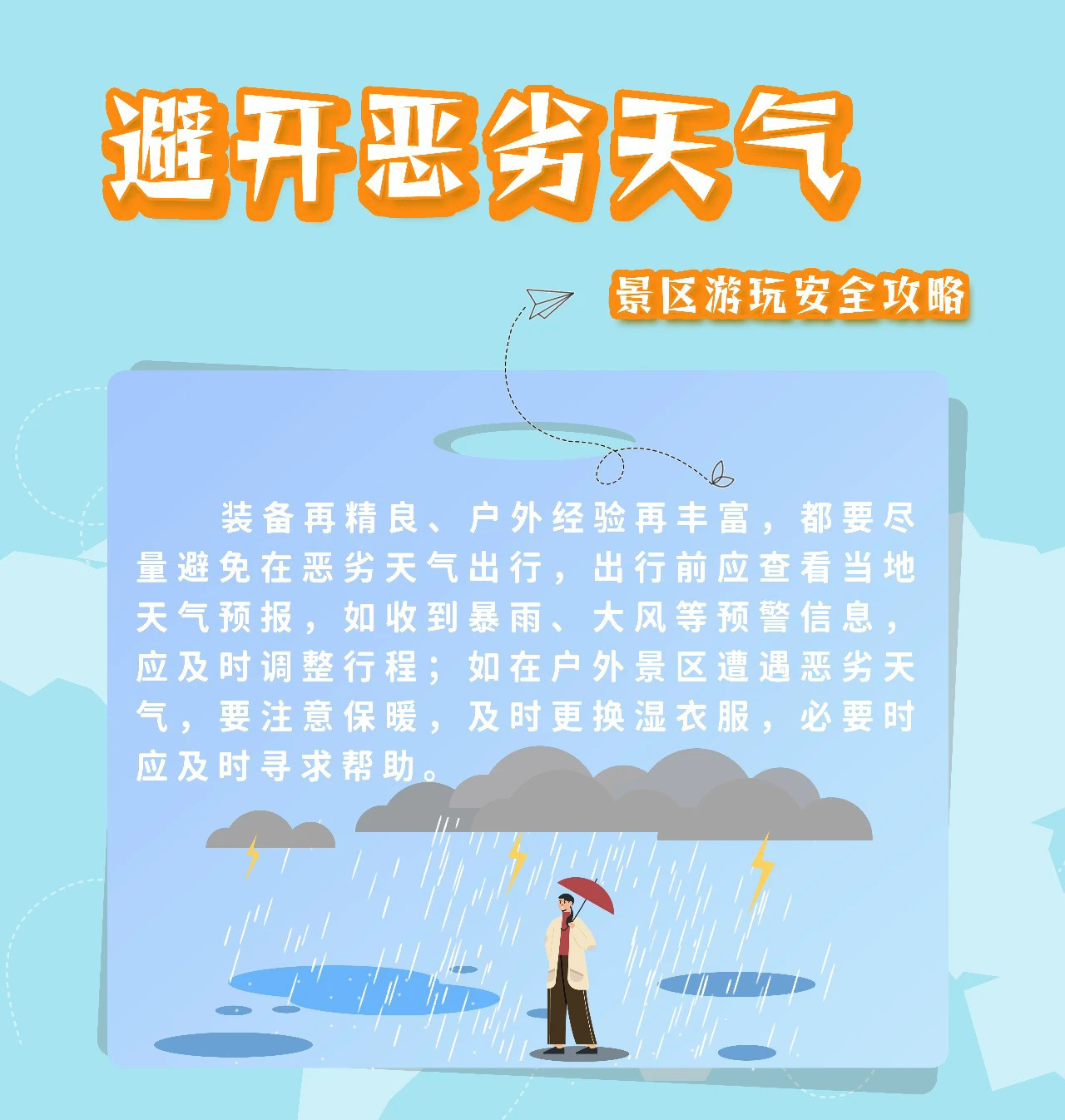 开展徒步、登山等户外旅游活动前务必提前规划合理路线,关注景区官方安全提示、天气预警信息,配备必要的安全防护装备,增强自我保护意识和应急避险能力。